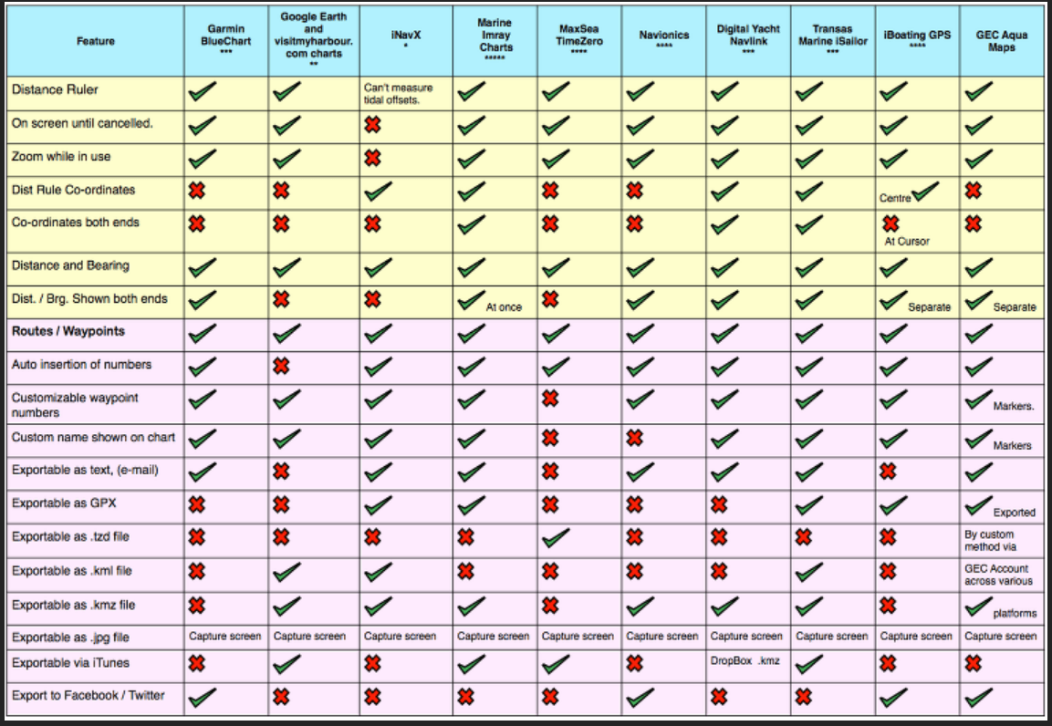 Route Planning on iPad or PC / Mac requires an app to have a responsive and controllable distance measuring device. Preferably one that will stay on screen while the screen is zoomed to its full extents. It must be capable of measuring very small vectors, i.e. 0.1kts or less but able to stay on screen at larger zooms, i.e. 4NM. Some apps can do this, others can't. Also once waypoints are plotted and a route made out, the data concerning the route and each waypoint in it should be exportable so that the information can be made up into a printed 'Routelist' and edited in a word processor. Some apps can do this easily, others can't.